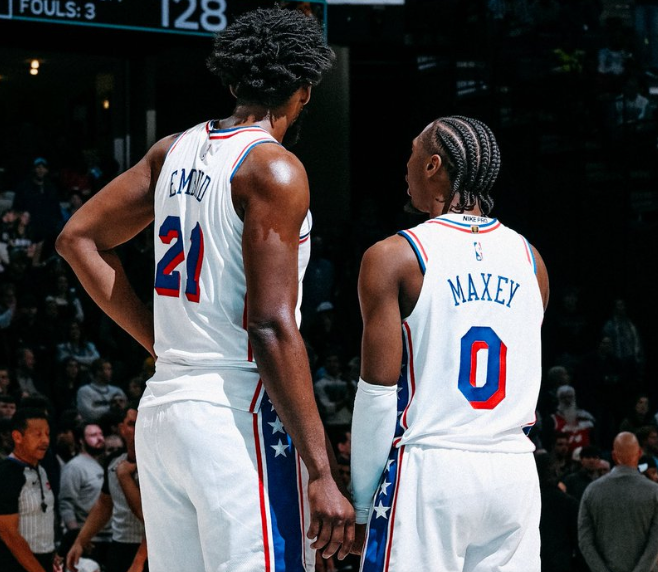 为了能够复仇,恩比德和保罗乔治在此战复出,首发出战的大帝手感滚烫,前两节8投6中,砍下了17分5板3助1断的全面个人数据,有了恩比德在内线的牵制,76人后场双枪马克西和埃奇库姆也获得了更多轻松出手的机会,二人上半场就合力砍下了35分,帮助76人带着29分的巨大优势,回到了中场更衣室。